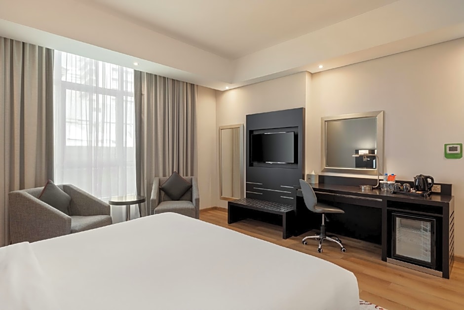 Tauchen Sie ein in eine Welt des Spaßes direkt vor Ihrer Tür mit Zugang zu einem aufregenden Wasserpark und einem erfrischenden Außenpool, ideal zum Planschen mit der Familie oder zum Entspannen in der Sonne. Wenn Entspannung das ist, was Sie suchen, verwöhnen Sie sich mit verjüngenden Spa- und Wellness-Paketen oder entspannen Sie im Dampfbad, während Sie im gesamten Hotel kostenloses WLAN genießen. Familien werden den speziellen Kinderpool und das kinderfreundliche Buffet lieben, während Geschäftsreisende das kostenlose Businesscenter und die Besprechungsräume nutzen können. Hier ist für jeden etwas dabei im Ramada Barsha Heights!